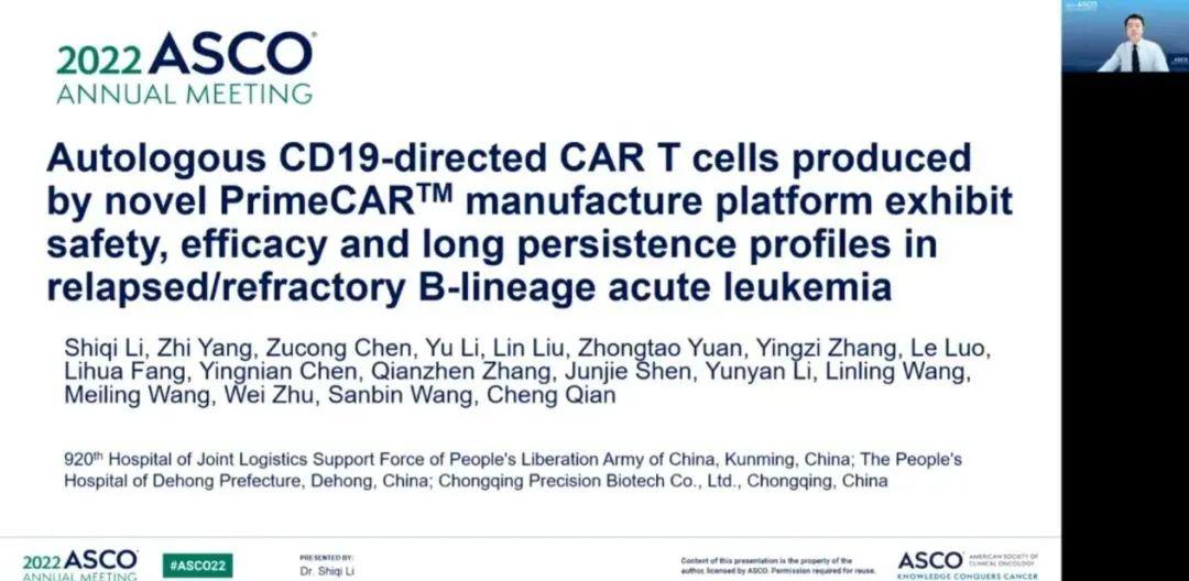 重慶精準(zhǔn)生物Prime CAR平臺入選2022 ASCO年會Clinical Science Symposium報告